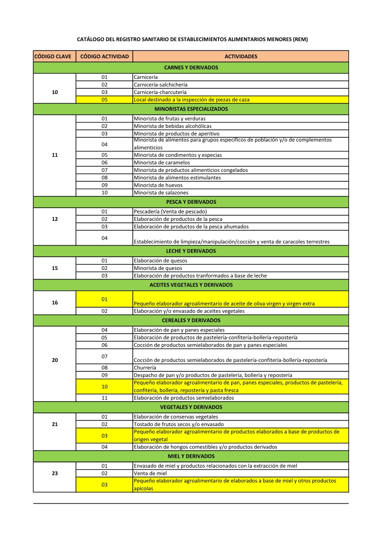 CATÁLOGO DEL REGISTRO SANITARIO DE ESTABLECIMIENTOS ALIMENTARIOS MENORES (REM)